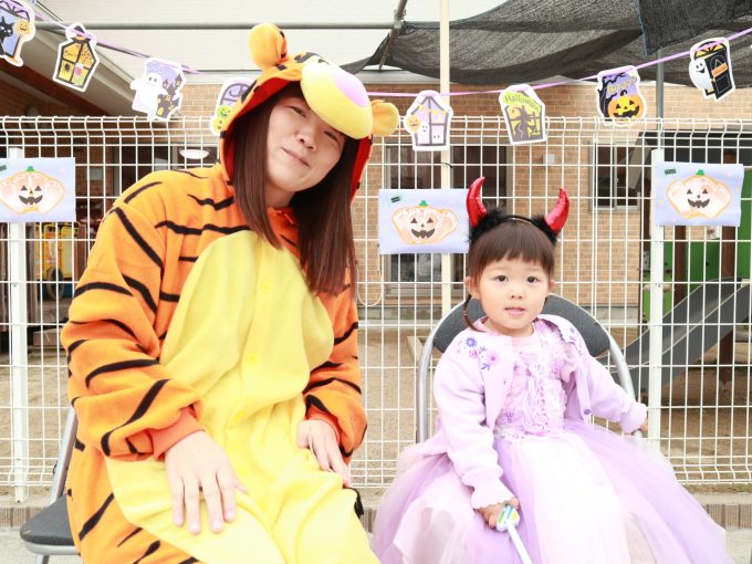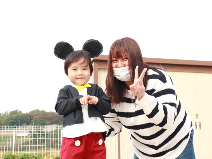 子どもたちは、一人ひとりかわいいキャラクターになりきってお母さんと一緒に登園してきましたよ~!