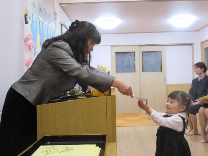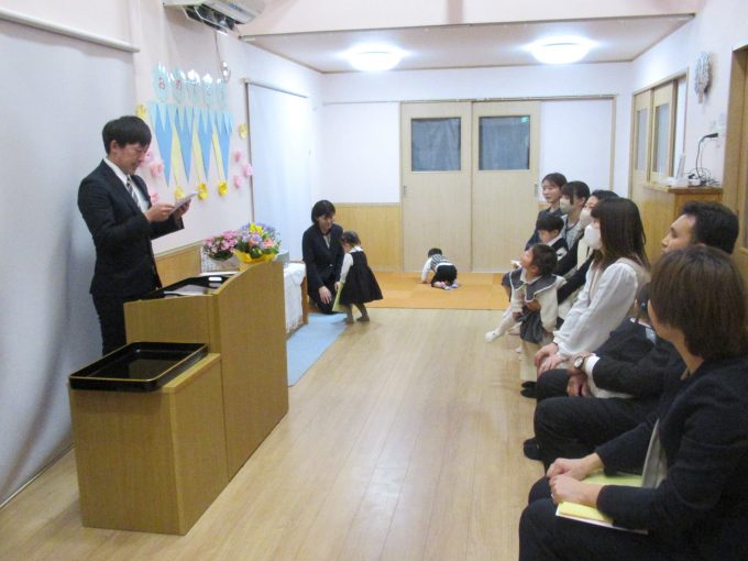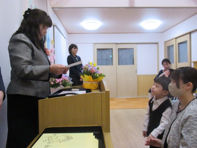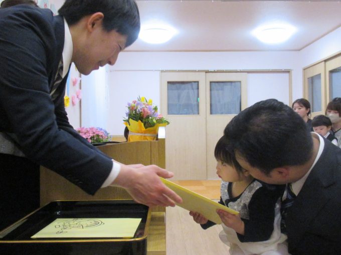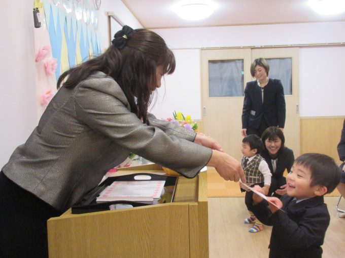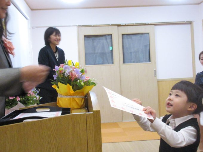 式の間も緊張することなく、恥ずかしそうに証書と記念品を受け取る子、お返事もして両手でしっかり受け取る子、この個性も成長の証💕園長先生と会長さんのお話も聞いて、担任の先生からお花をいただいてニコニコで帰宅していきました!