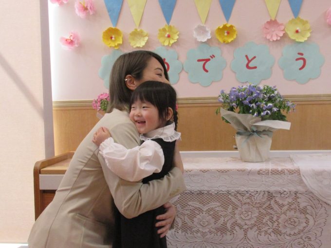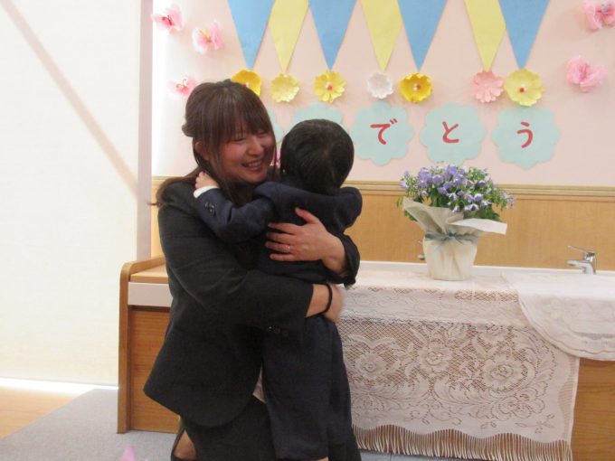 「大好き!」のひと言を伝えて、お母さんにぎゅっと抱きしめてもらいます(≧▽≦)♪♪心が温まる場面をみんなで見守りました☆