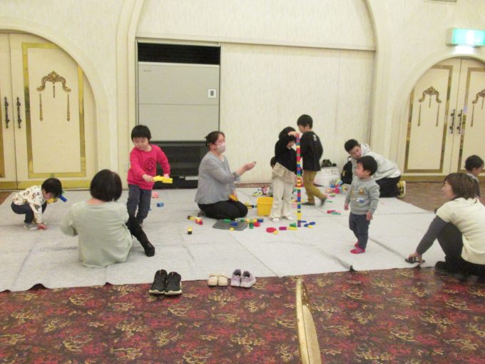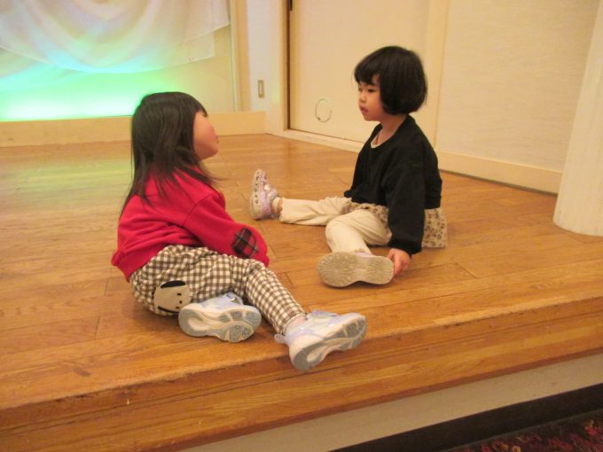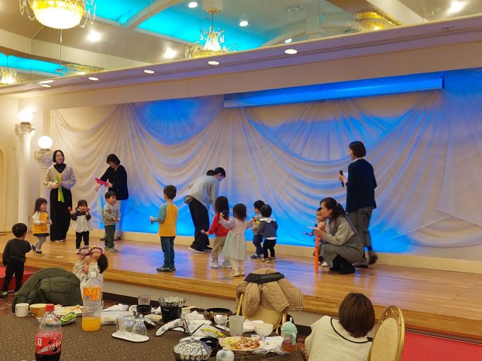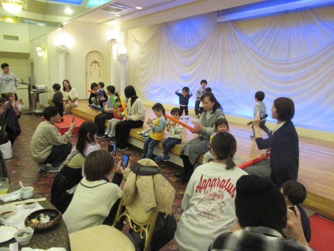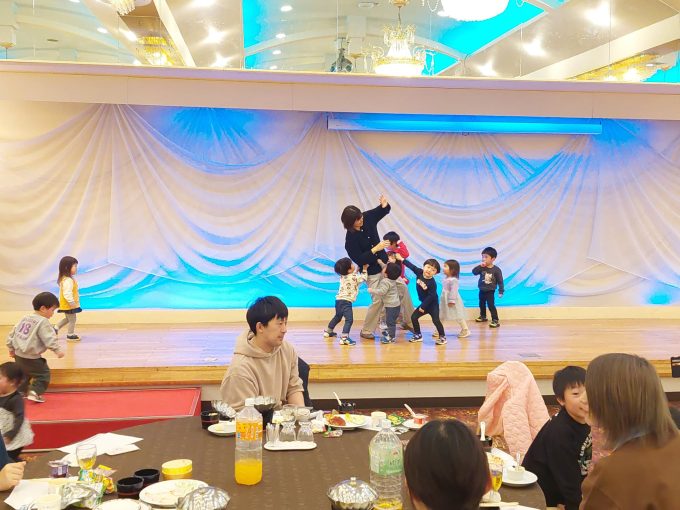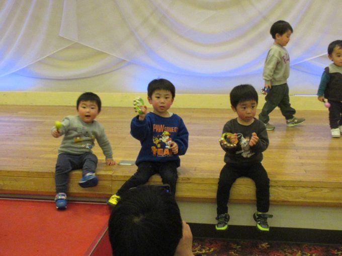 子どもたちはこの広い部屋と大きなステージが気になって次々と集まってきました(笑)昨年より早いスピードで集合‼ヽ(^o^)丿